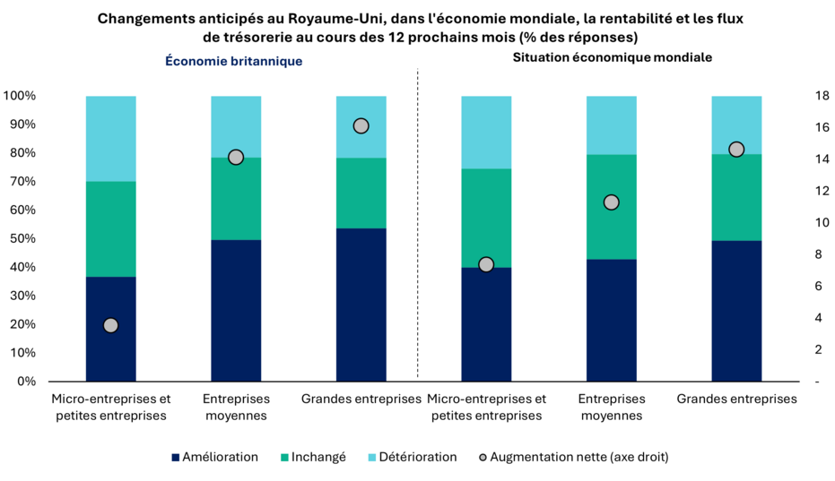 Les micros et petites entreprises restent sceptiques : 66 % d'entre elles estiment que l'économie britannique continuera de se détériorer ou restera inchangée en 2026, et plusieurs secteurs continuent de faire face à des risques structurels, notamment la volatilité des taux d'intérêt, les cybermenaces et les perturbations de la chaîne d'approvisionnement.